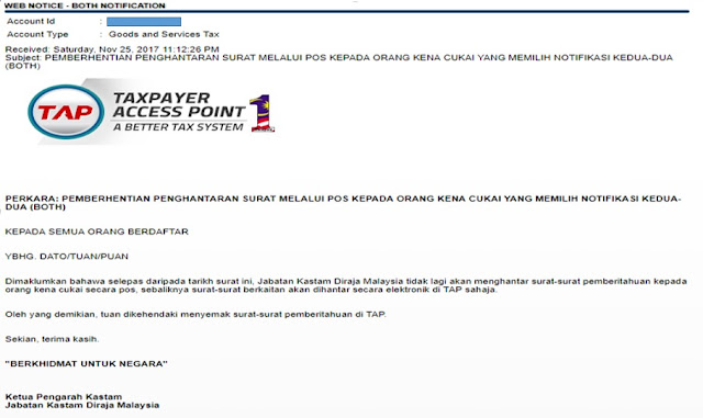 Atsy Management Accounting Gst And Tax In Malaysia Gst Pemberhentian Penghantaran Surat Melalui Pos Kepada Orang Kena Cukai Yang Memilih Notifikasi Kedua Dua