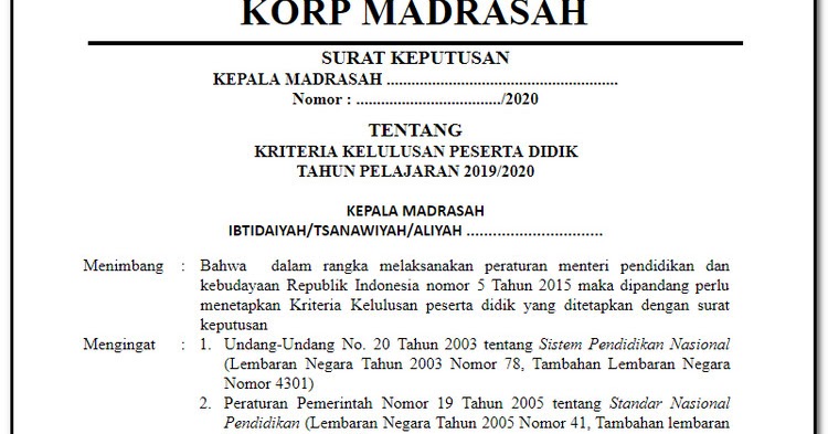 Contoh Sk Kelulusan Siswa Ra Tk Tahun 2019 2020 Format File