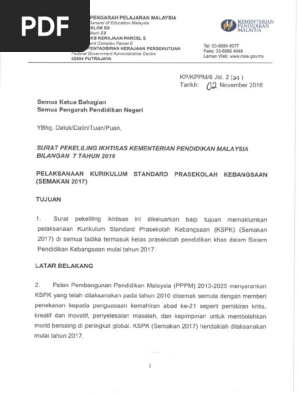 Kspk Semakan 2017 Merupakan Kurikulum Prasekolah Kebangsaan Yang Digunakan Oleh Semua Tadika Dalam Pdf Document