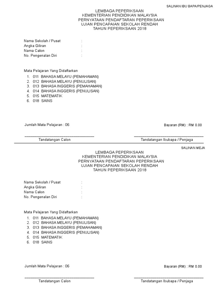 Jadual Ujian Pencapaian Sekolah Rendah 2018